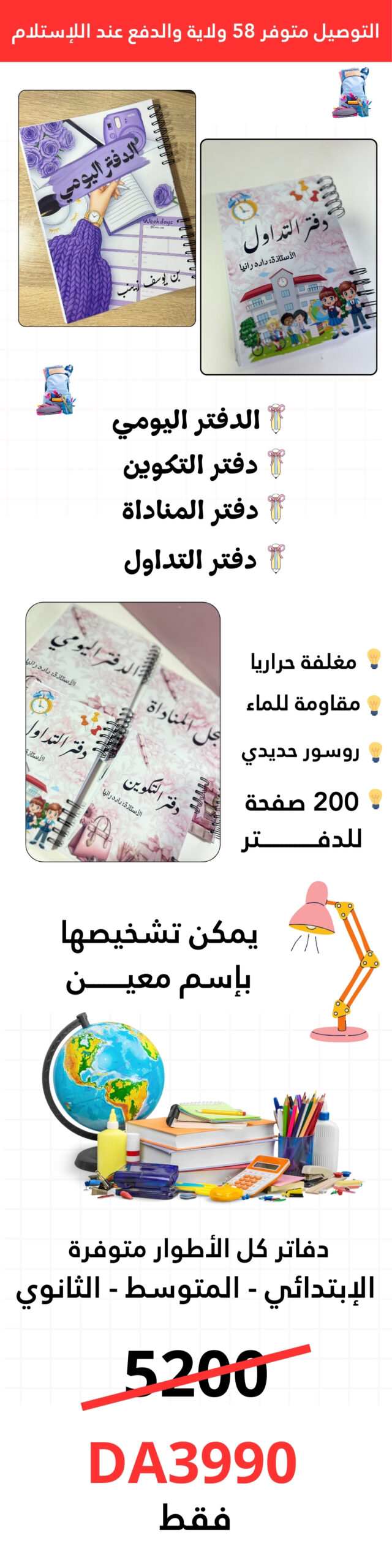 التوصيل متوفر 58 ولاية والدفع عند الإستلام